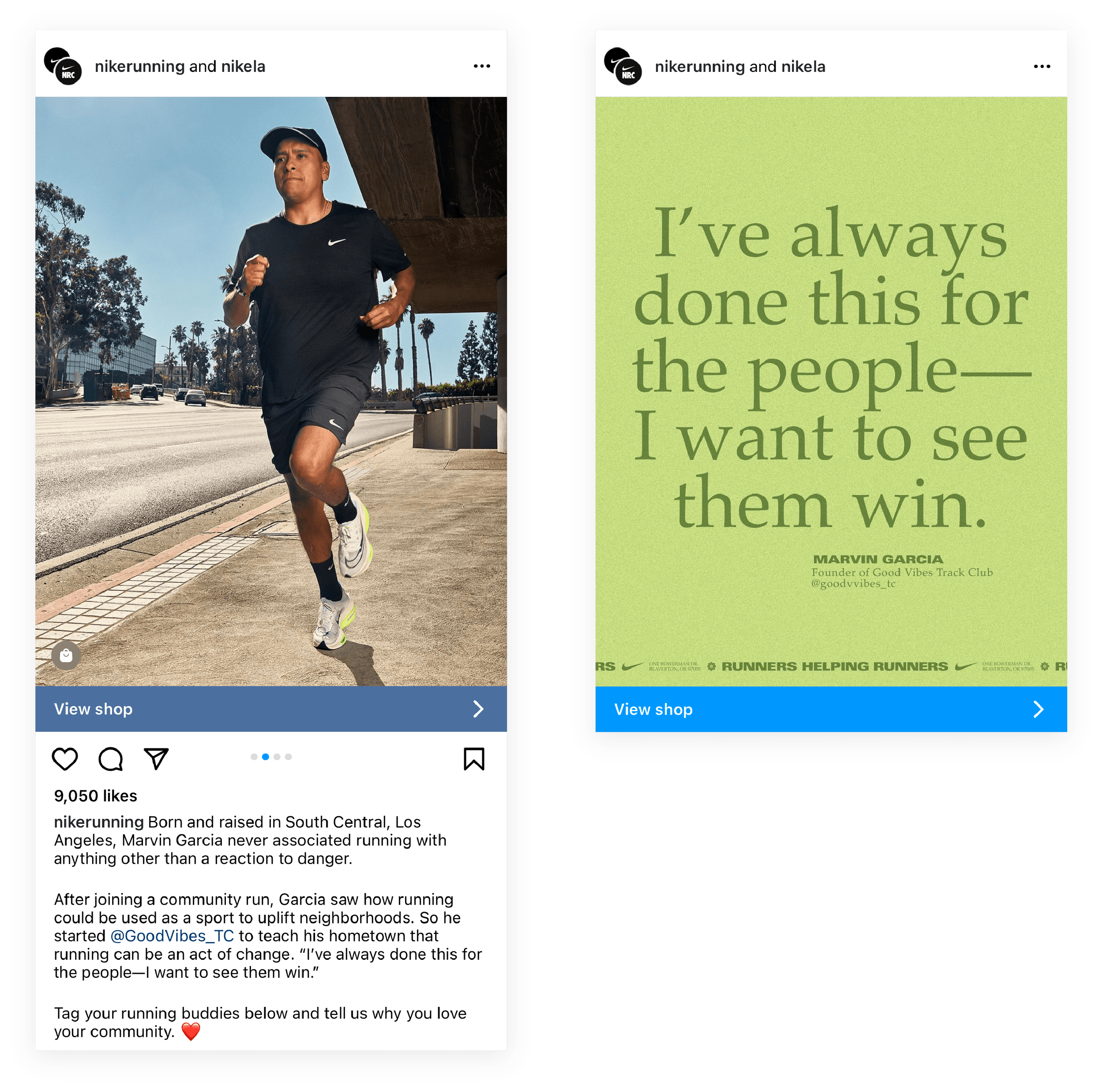 I helped direct the Thesis team in writing Nike App stories and social posts that highlighted runners inspiring their communities to join the fun while tackling new goals together.