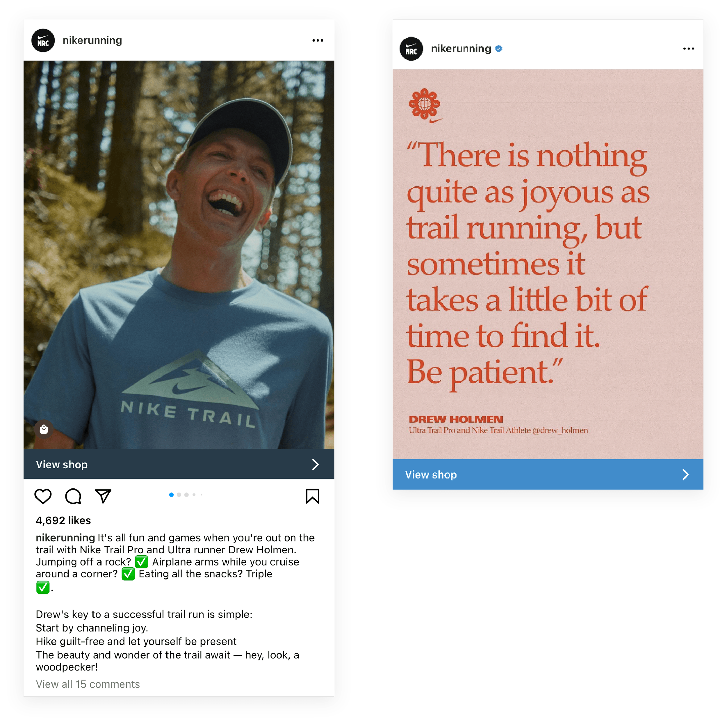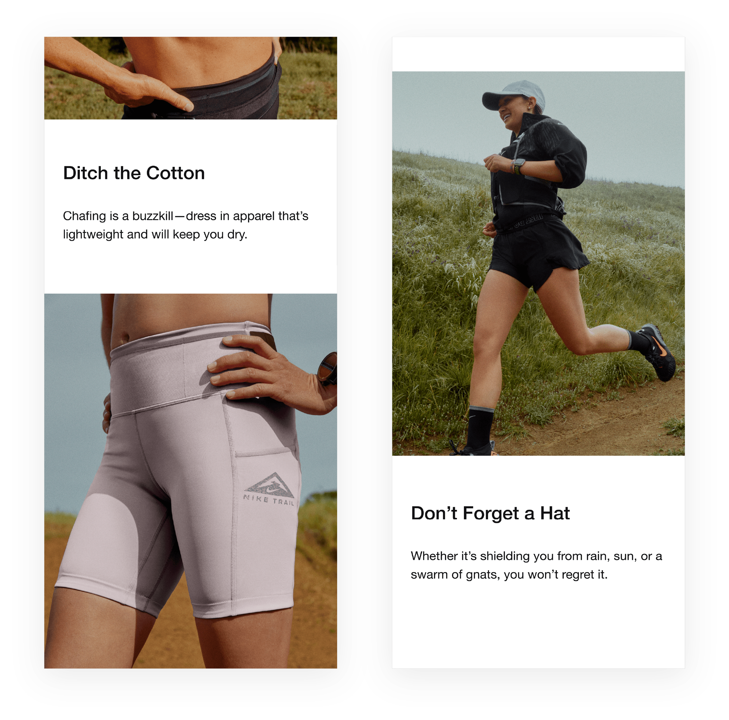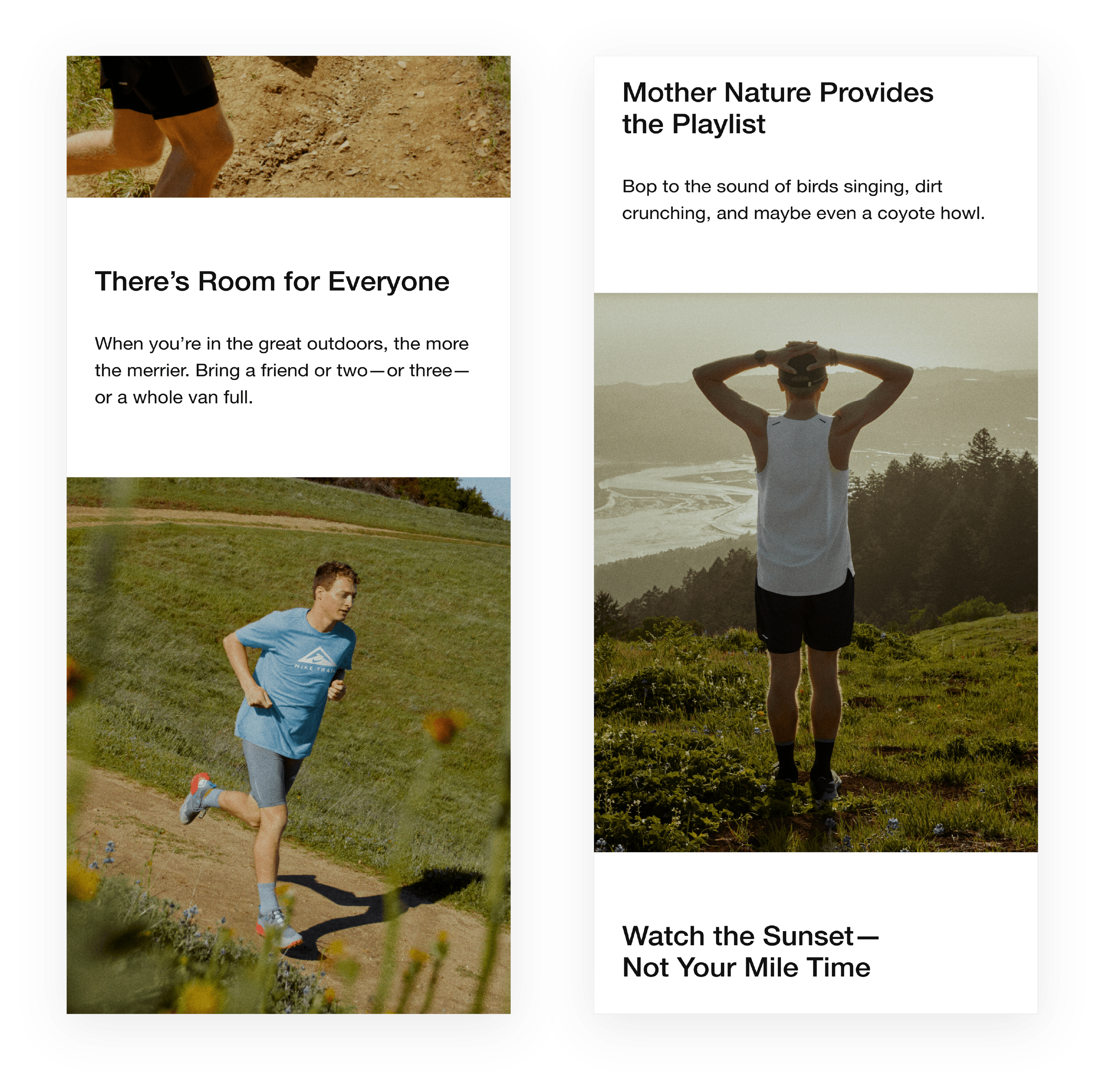 I directed a small but mighty Thesis writing team in support of Nike’s Trail Running digital campaign for .COM, the Nike App and social media. To make a traditionally niche sport feel more accessible, we developed fun and inclusive narratives around pro tips that inspired newbies to simply find a trail and start moving.